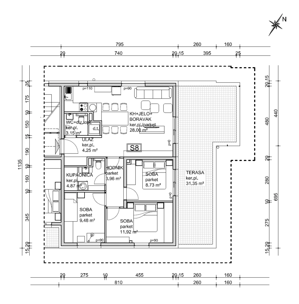 - KUHINJA+DNEVNI BORAVAK+BL28.00 m2